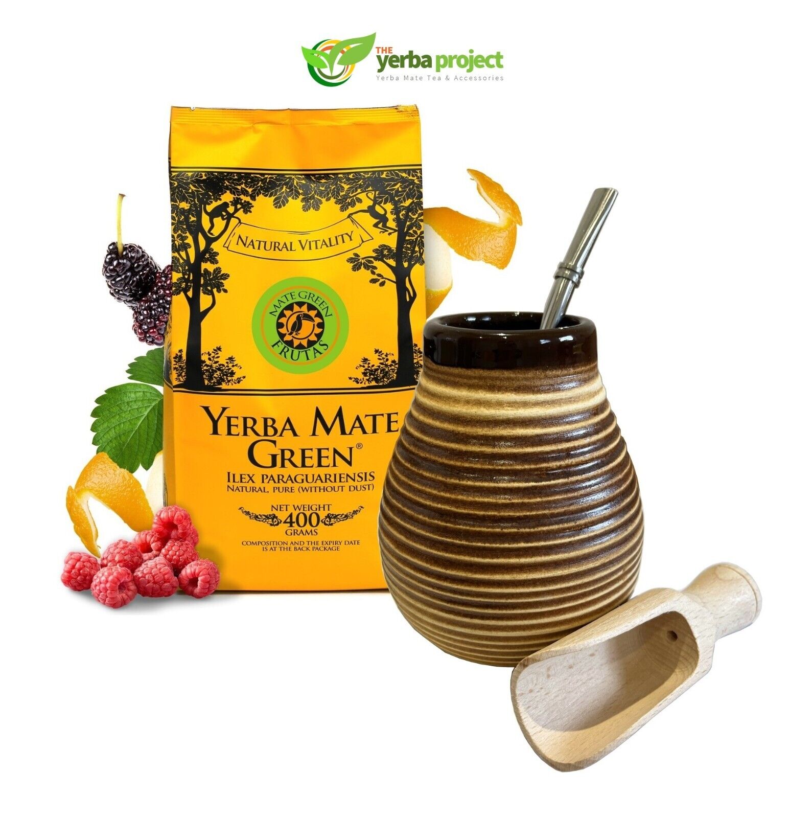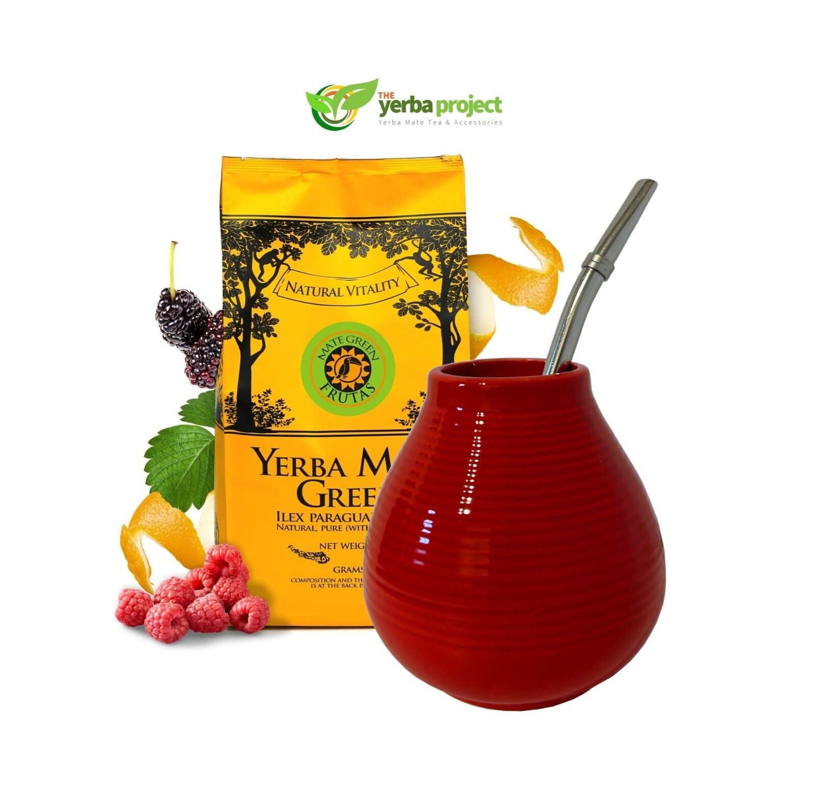 Yerba Mate Tea Set Verde Mate Frutos Tropicales 400g Ceramic Cup 350ml Gift Box