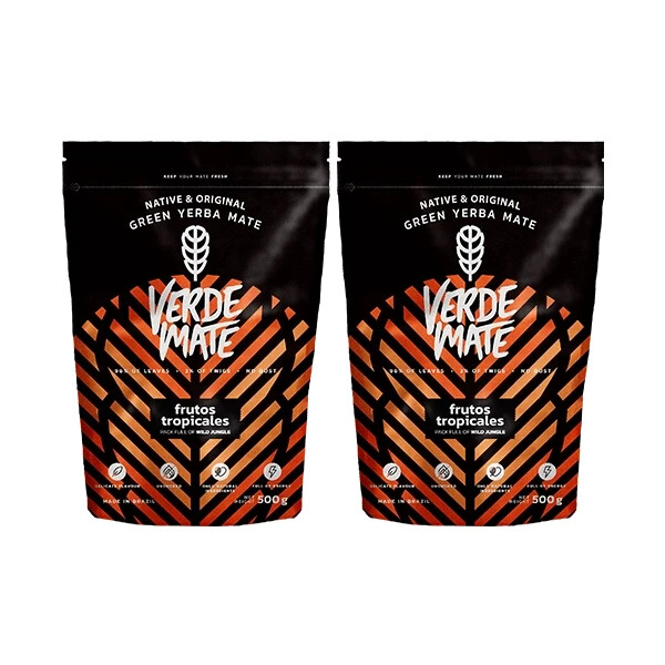 Yerba Mate Tea Set Verde Mate Frutos Tropicales 500g Mate Cup Black 350ml Straw