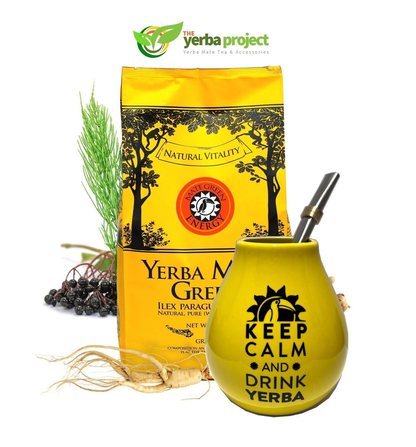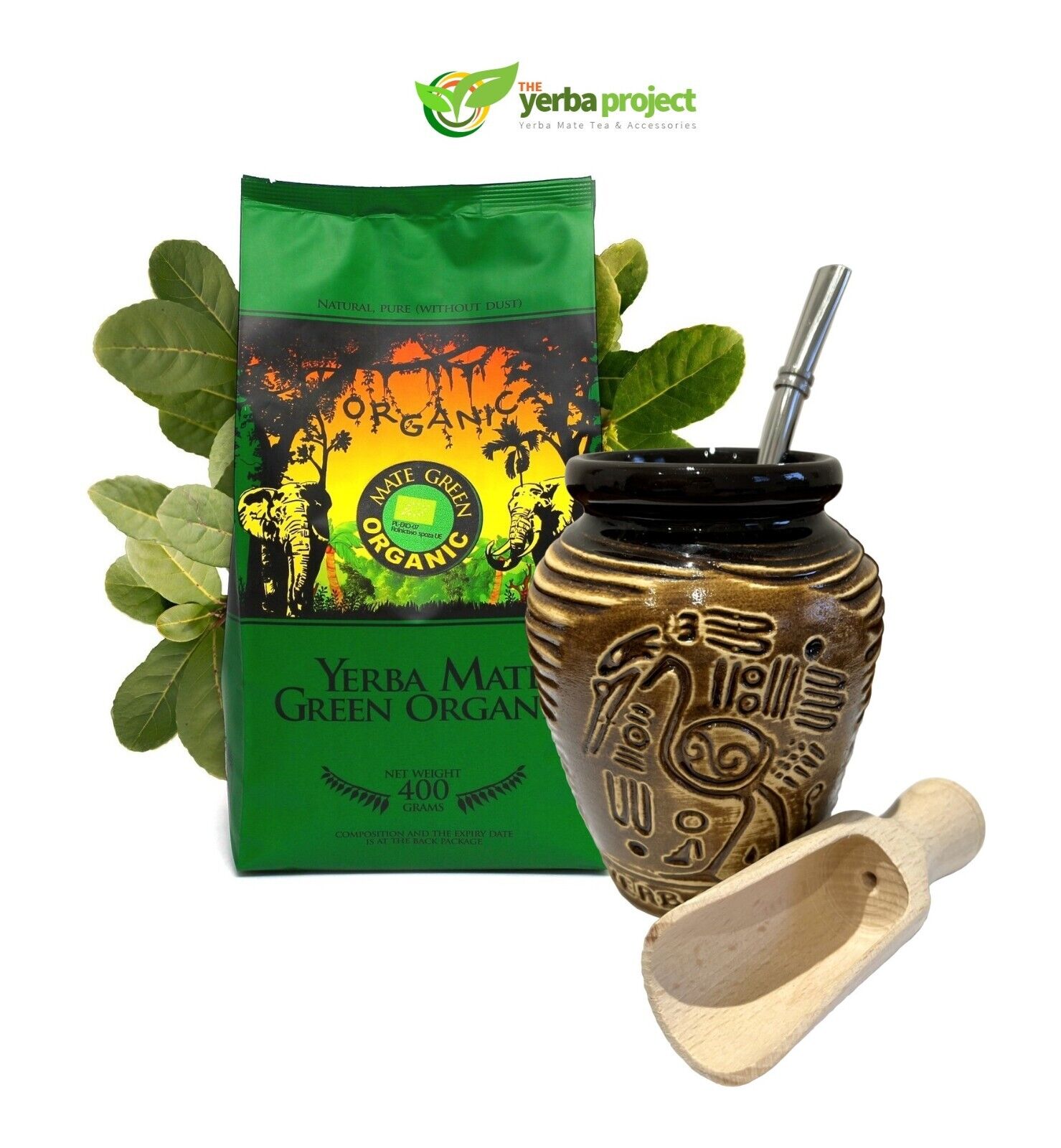 Yerba Mate Tea Organic Set Verde Mate Organica Unsmoked 500g Ceramic Cup 400 ml