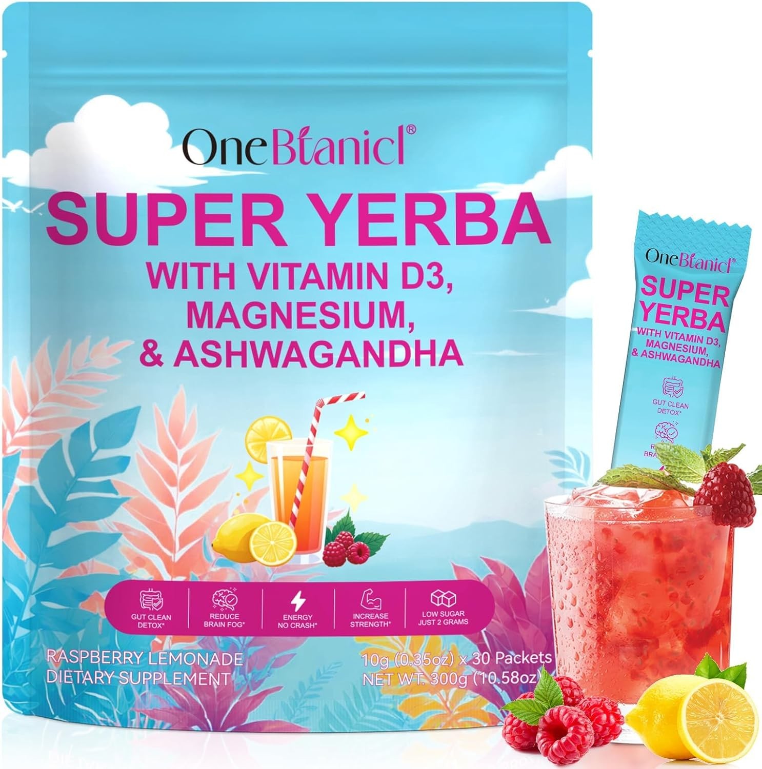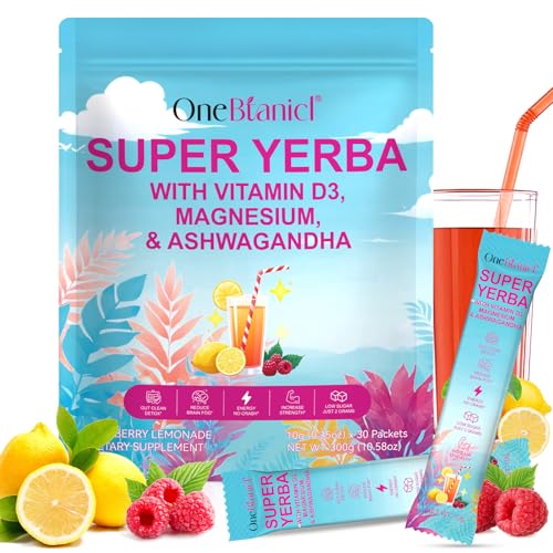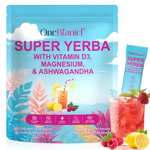 Super Yerba Mate Tea Bags with Vitamin D3, Raspberry Lemonade Yerba Mate Tea - Supports Digestive Health, Mental Clarity & Energy, 2g sugar, Prebiotic + Probiotic