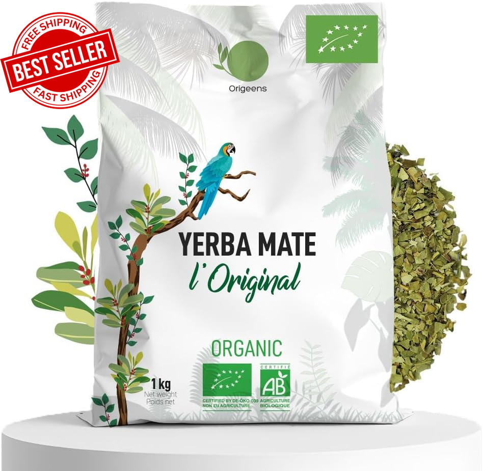 ORIGEENS ORGANIC YERBA MATE 1Kg | Yerba Mate Tea Hand-picked, Unsmoked, Leaf, without stems, not powdery | Energy and Detox Drink