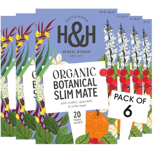 Heath & Heather - Organic Slim Mate Tea with Green Tea, Yerba Mate & Lemongrass • Naturally Energising & Metabolism Supporting • Vegan • Multipack 6 x 20 Boxes (120 Tea Bags)