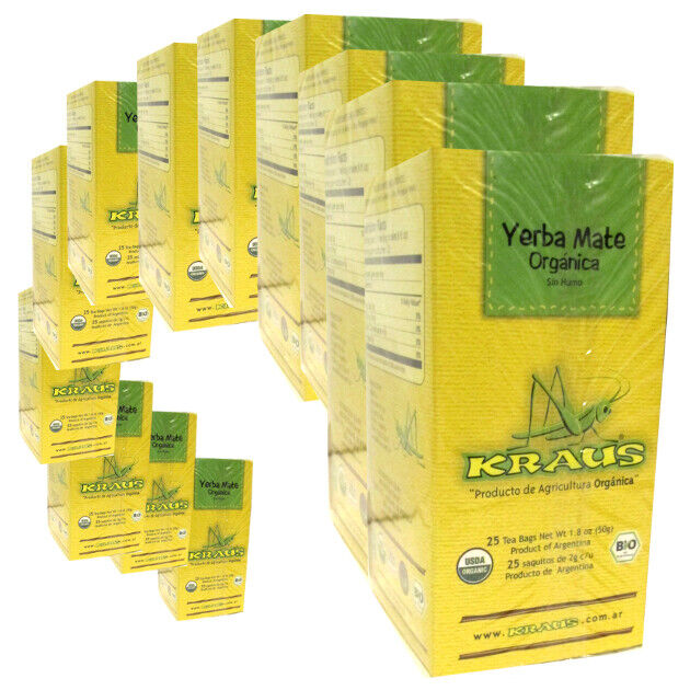 Y143M VALUE PACK ORGANIC YERBA MATE TEA: KRAUS TEABAGS - 12 BOXE 300 TEABAGS