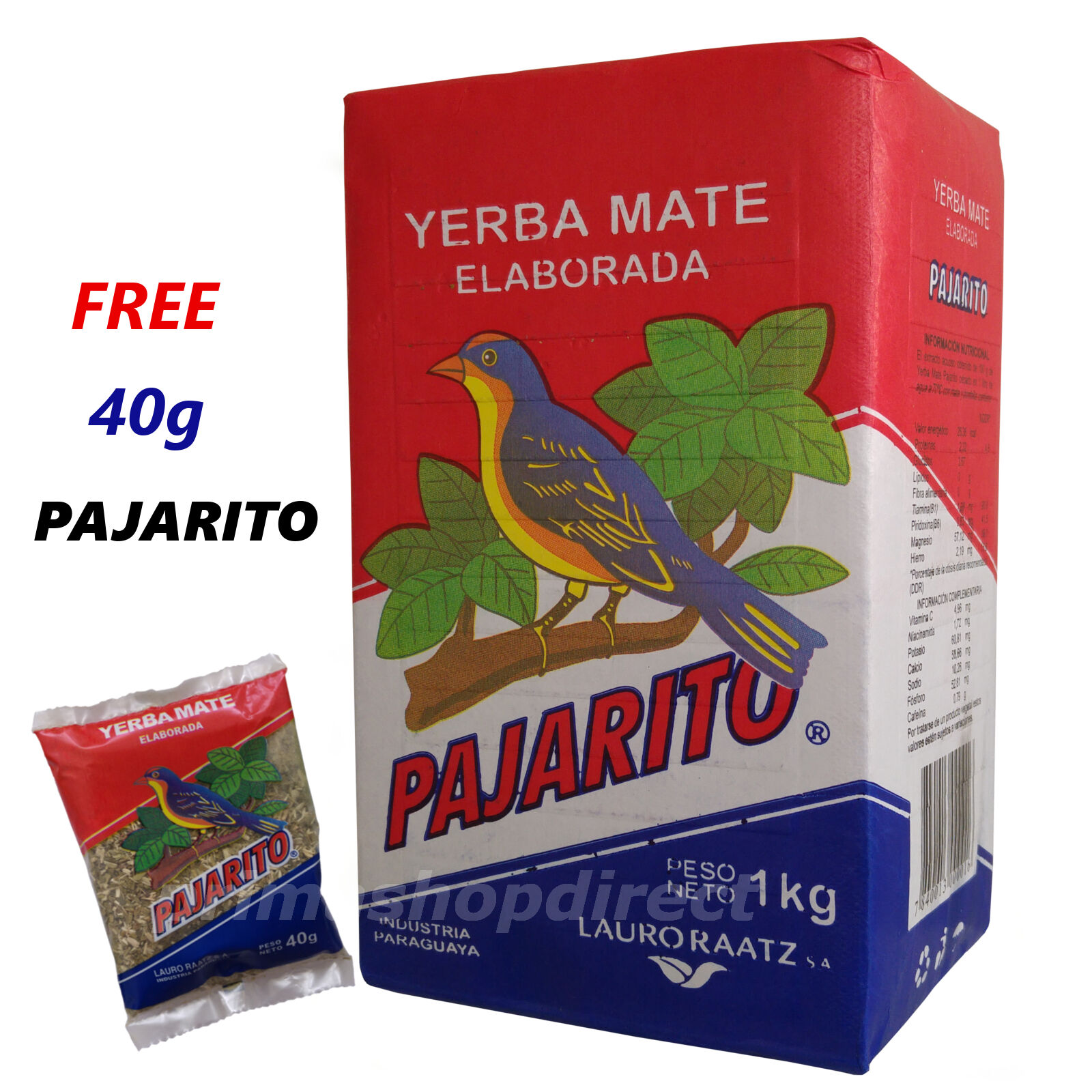 1 kg YERBA MATE PAJARITO ELABORADA TEA plus 40g FREE PAJARITO PACK