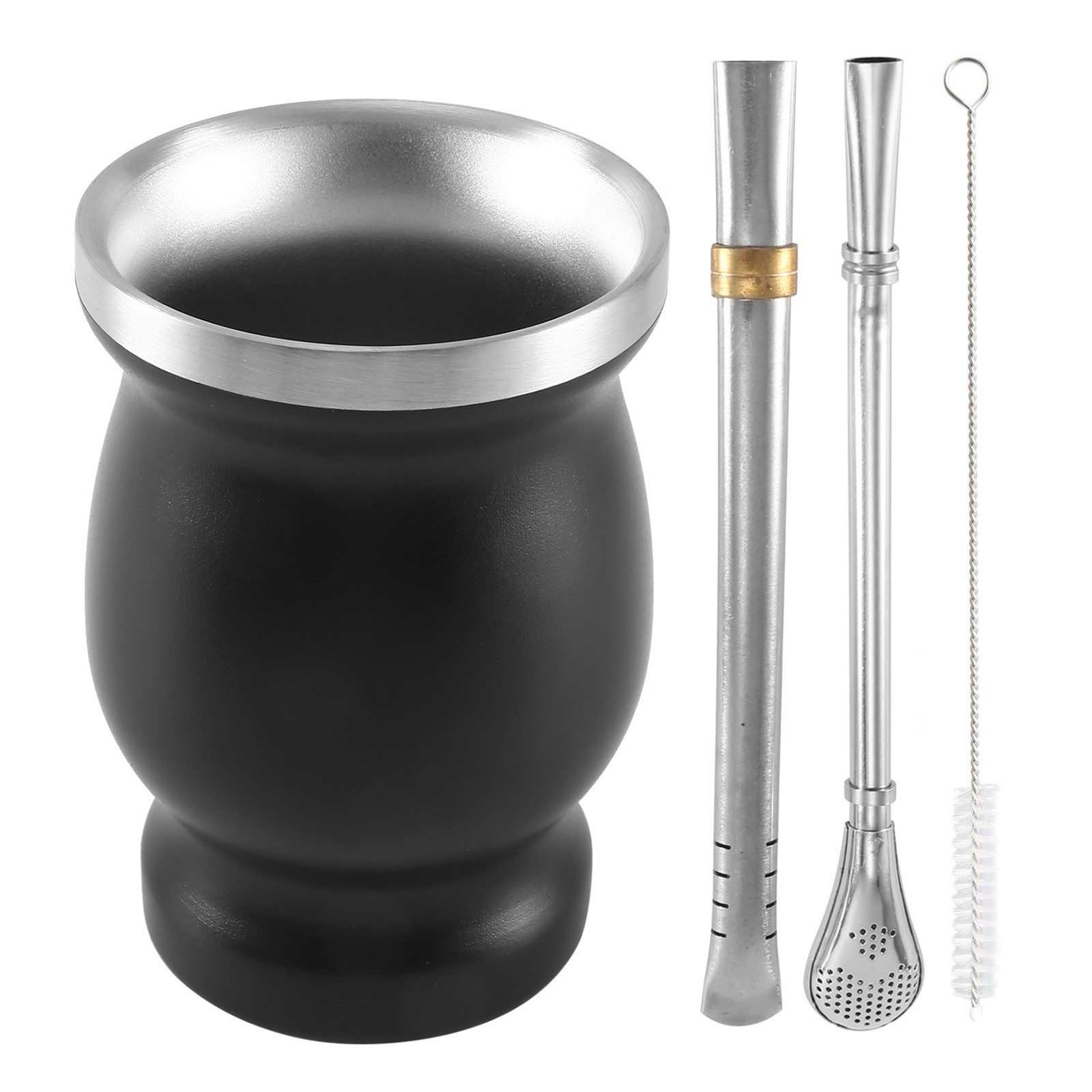 2X -Wall Stainless Yerba Mate Gourd Tea Cup Set Water Cup with 2 Bombillas9996