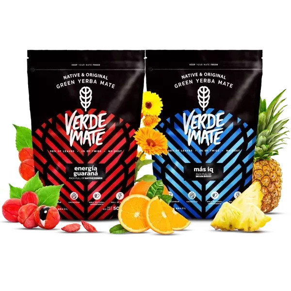 Yerba Mate Tea Set Verde Mate Fruity Energy No Dust Orange Strawberry 6x500g