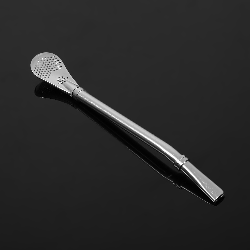 Stainless Steel Yerba Mate Tea Gourd Bombilla Filtered Straw Spoon Silver