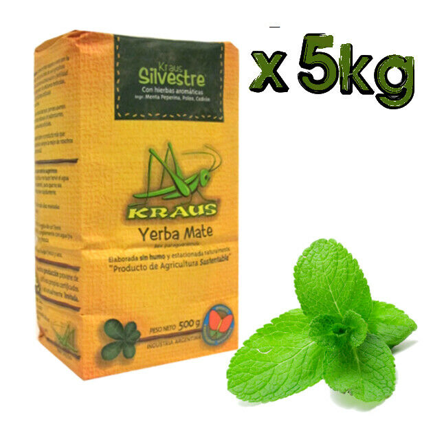UNSMOKED YERBA MATE TEA KRAUS SILVESTRE REFRESHING PEPPERMINT 5KG VALUE PACK