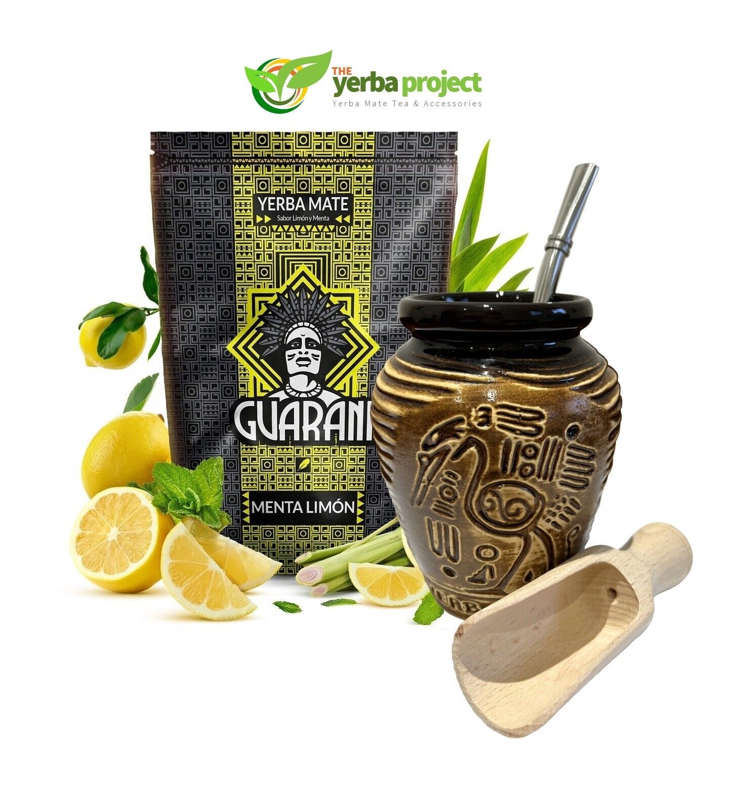 Guarani Mint Lemon Yerba Mate Tea Set Strong Drink Mate Tea Complete Set