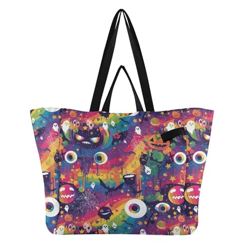 Wudan Canvas Totes Big Sturdy Kitchen Grocery Bags Laundry Bag for Men Maternity delivery kit Essential Halloween Stars Eyes Ball Rainbow Boos