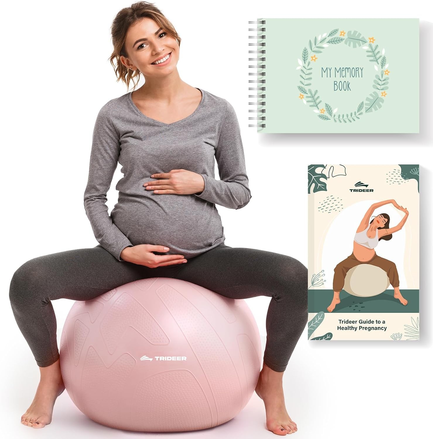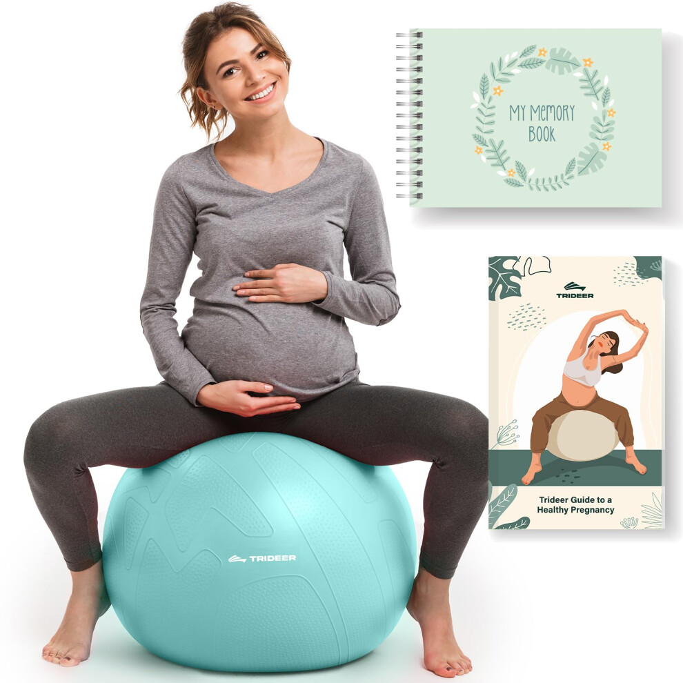 Trideer Pregnancy Ball - Exercise & Yoga Ball for Labor, Maternity & Postpartum Recovery, Eco-Friendly, Non-Latex, Includes Pregnancy Guide & Baby Memory Book