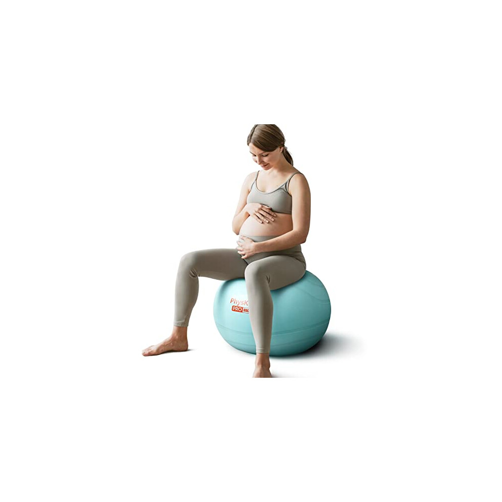 PhysKcal PRO Gym Ball 65cm Blue, Anti-Burst Birthing Ball for Maternity & Labour, Yoga Exercise Swiss Ball for Fitness and Recovery