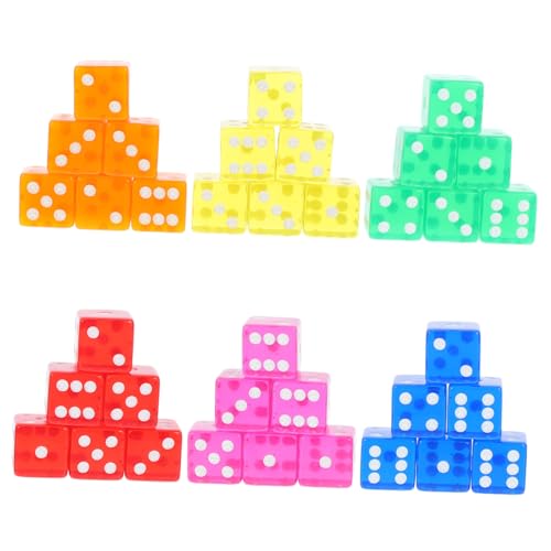 FRCOLOR 10Pcs Transparent Colorful Acrylic Dice with Black Dots Rounded Corners for Bar Playing Dice Family Math Games and Ktv Night Entertainment