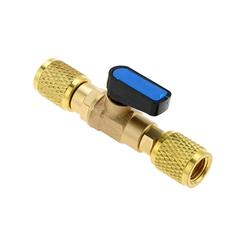 1/4inch SAE Female Adapter 7/16inch-20 UNF Brass Shut-Off Valve Air Conditioner Refrigerant Ball