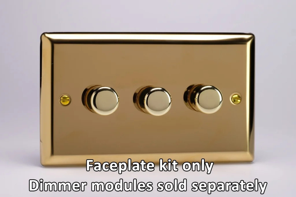 Dimmer Brass Matrix Faceplate Kit Screwless Polished 3-Gang Varilight WDVD3S
