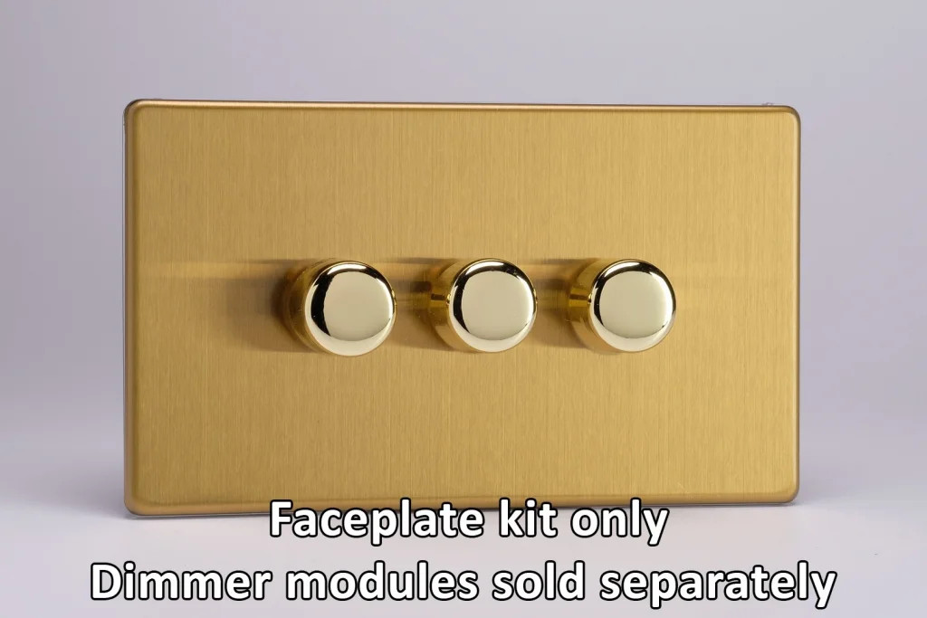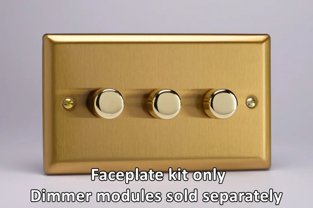 Dimmer Brass Matrix Faceplate Kit Classic Brushed 3-Gang Varilight WBD3