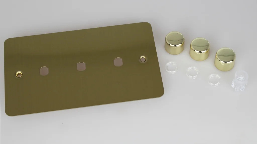Dimmer Brass Matrix Faceplate Kit Ultraflat Brushed 3-Gang Varilight WFBD3