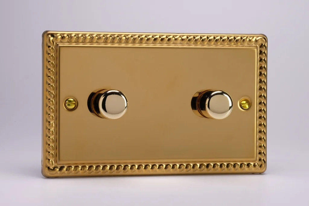 Varilight Classic Georgian Brass 2-Gang Rotary Dimmer Matrix Kit