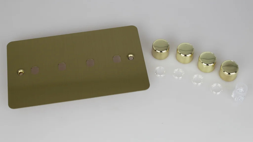 Dimmer Brass Matrix Faceplate Kit Classic Brushed 4-Gang Varilight WBD4