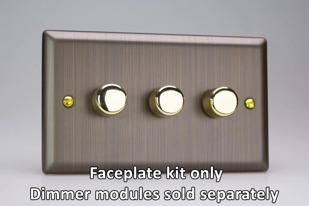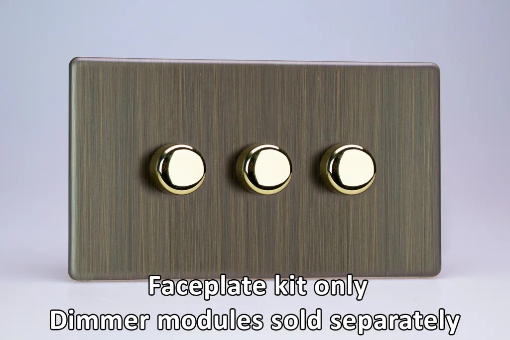 Dimmer Brass Matrix Faceplate Kit Urban Screwless Antique 3-Gang Varilight