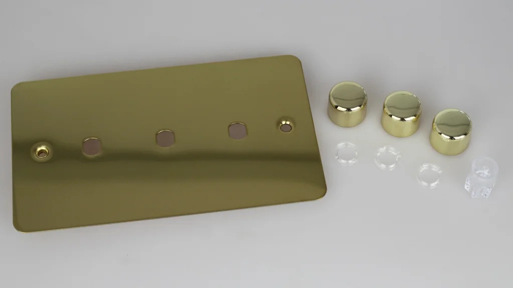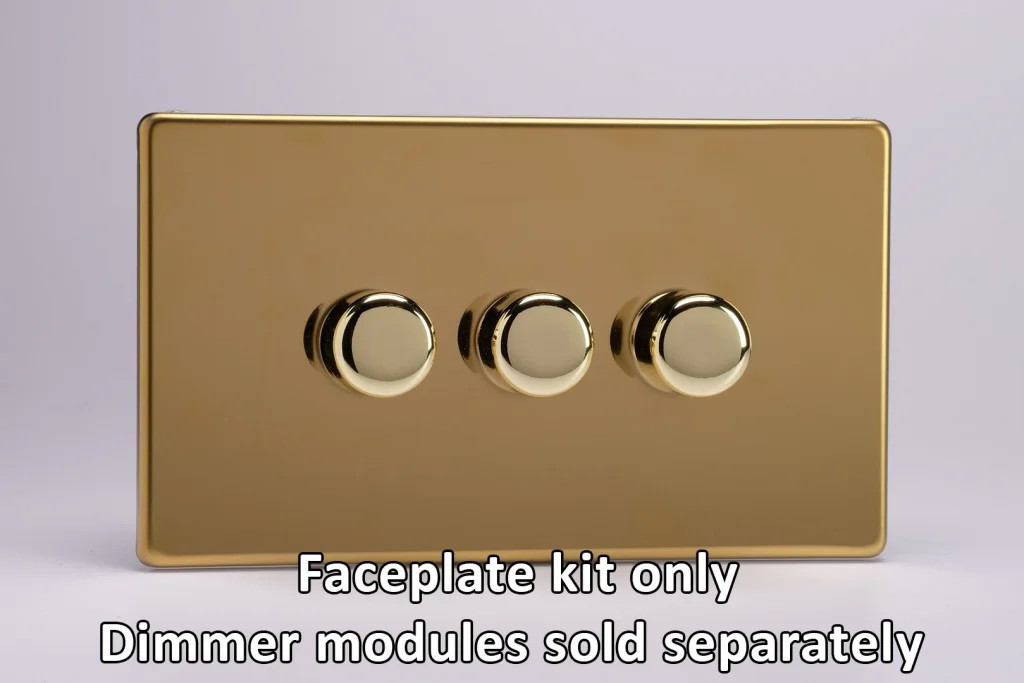 Dimmer Brass Matrix Faceplate Kit Ultraflat Polished 3-Gang Varilight WFVD3