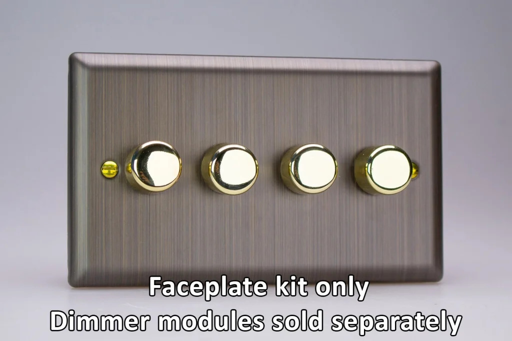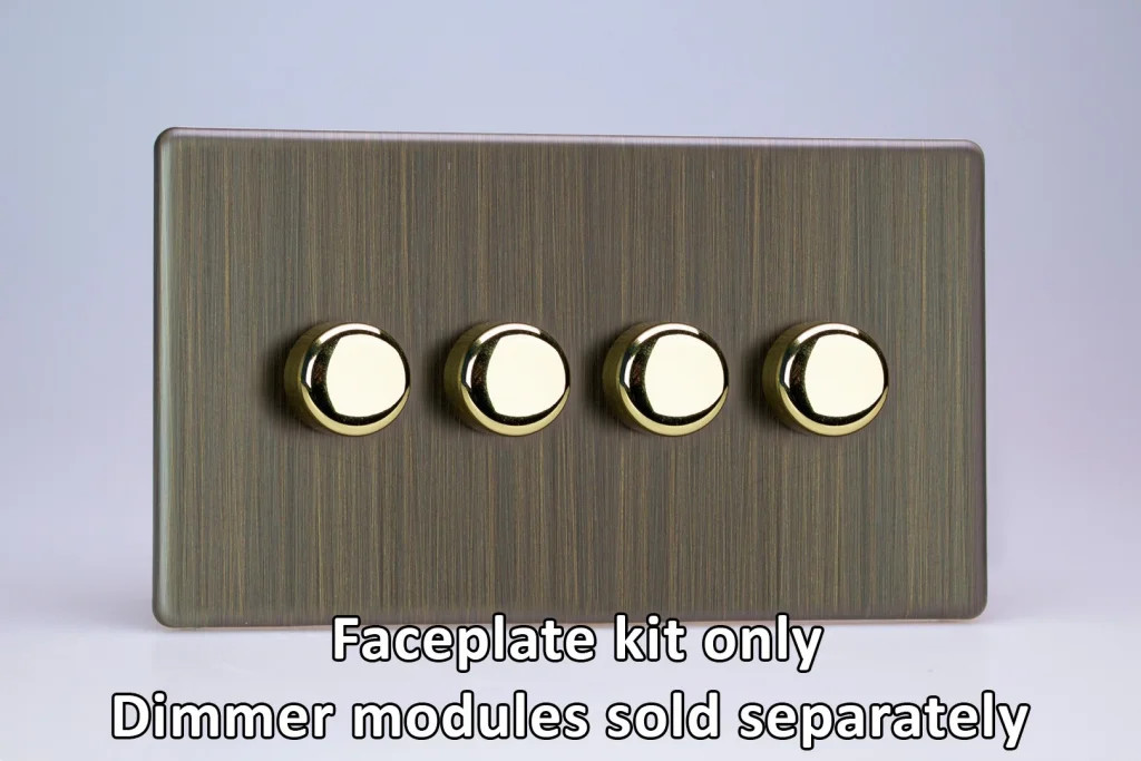 Dimmer Brass Matrix Faceplate Kit Urban Screwless Antique 4-Gang Varilight