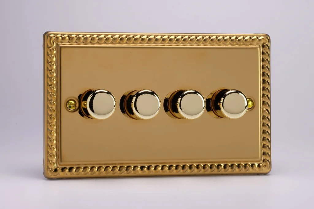 Dimmer Brass Matrix Faceplate Kit Classic Georgian 4-Gang Varilight WGD4