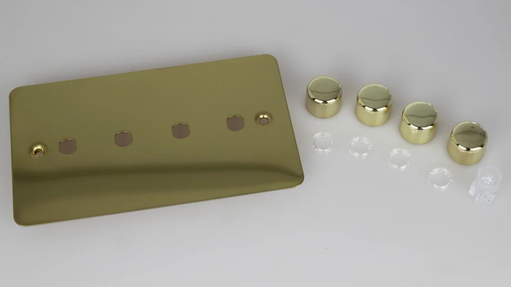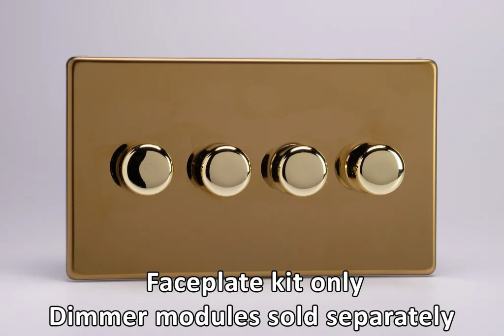 Dimmer Brass Matrix Faceplate Kit Ultraflat Polished 4-Gang Varilight WFVD4