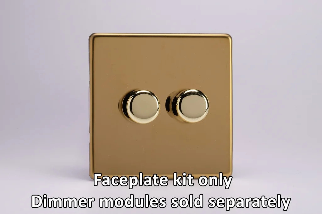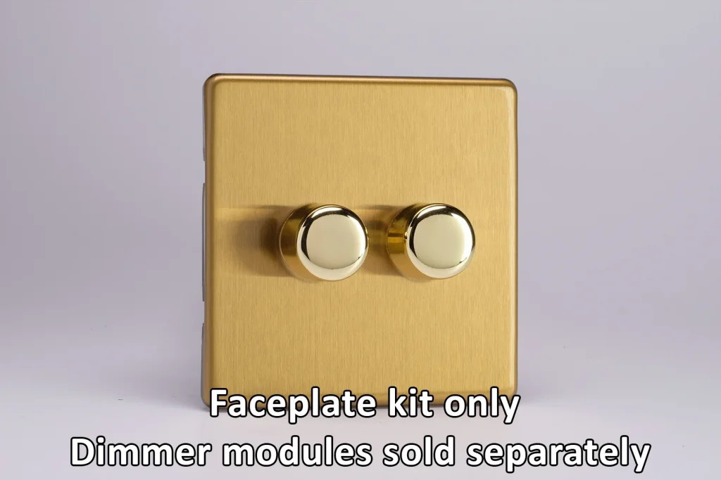 Dimmer Brass Matrix Faceplate Kit Screwless Brushed 2-Gang Varilight WDB2S