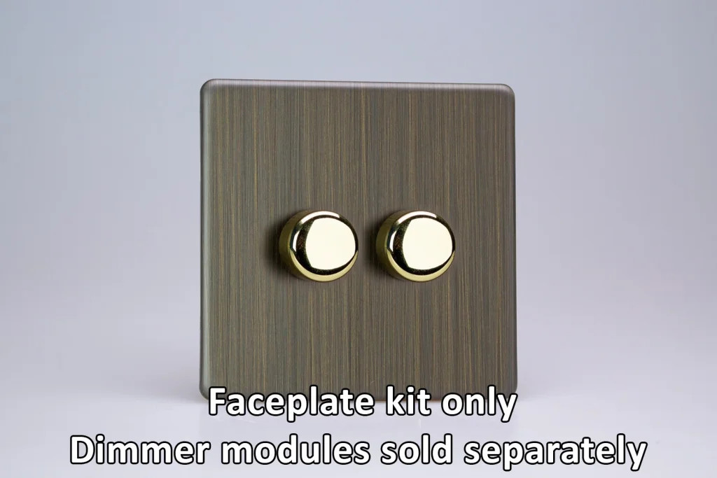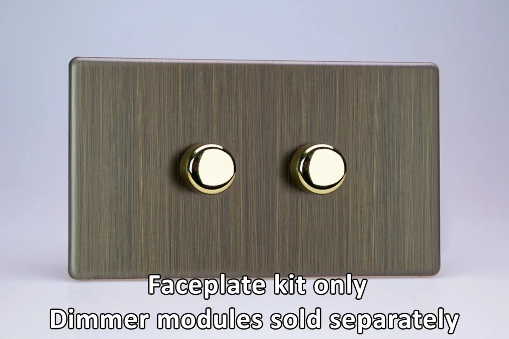 Dimmer Brass Matrix Faceplate Kit Urban Screwless Antique 2-Gang Varilight