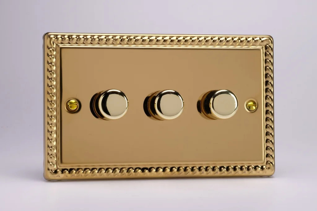 Dimmer Brass Matrix Faceplate Kit Classic Georgian 3-Gang Varilight WGD3