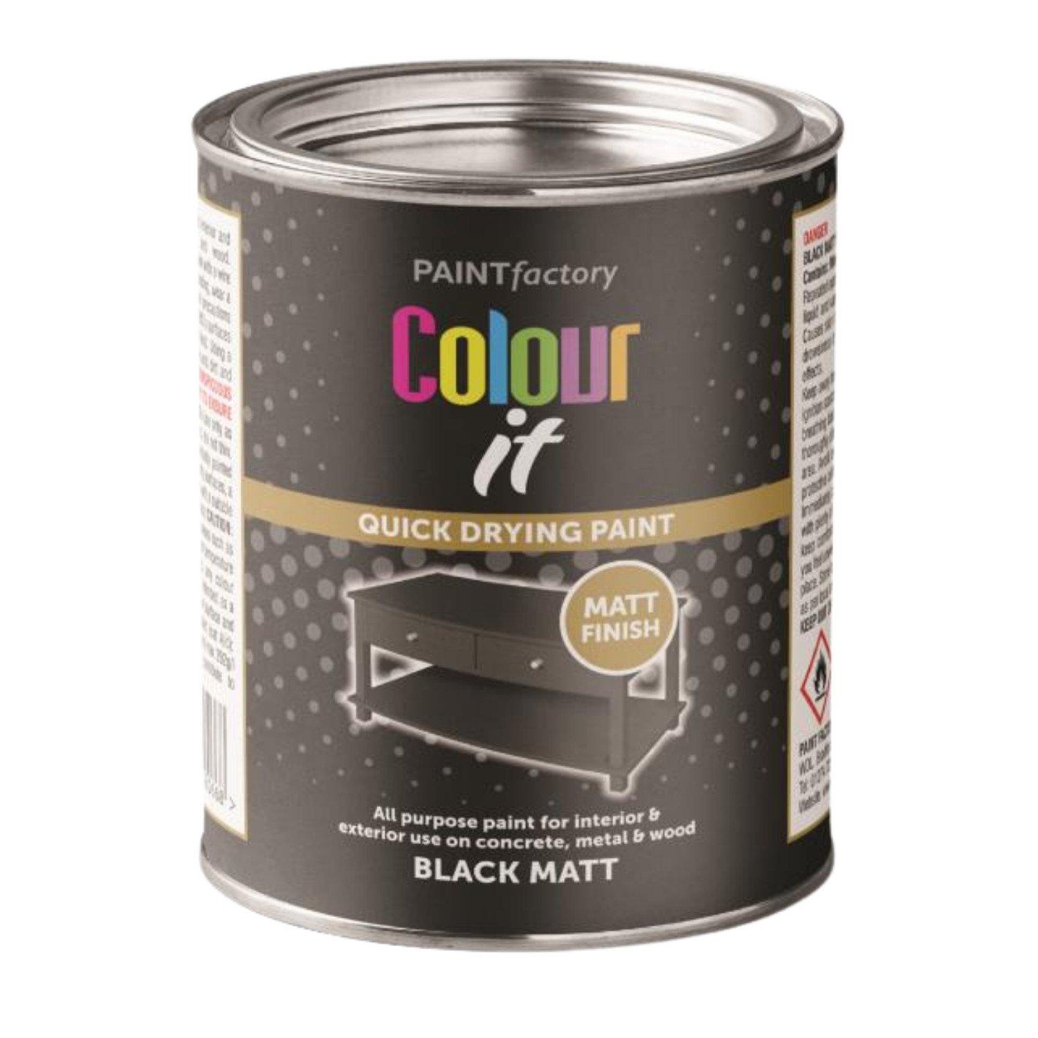 Black Matt Paint Quick Drying Interior Exterior Wood Metal Concrete Tin 300ml