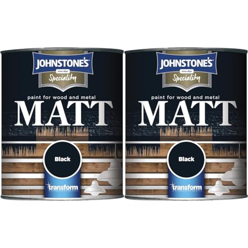 Johnstone's MATT PAINT FOR WOOD and METAL BLACK 0.75L (Pack of 2)