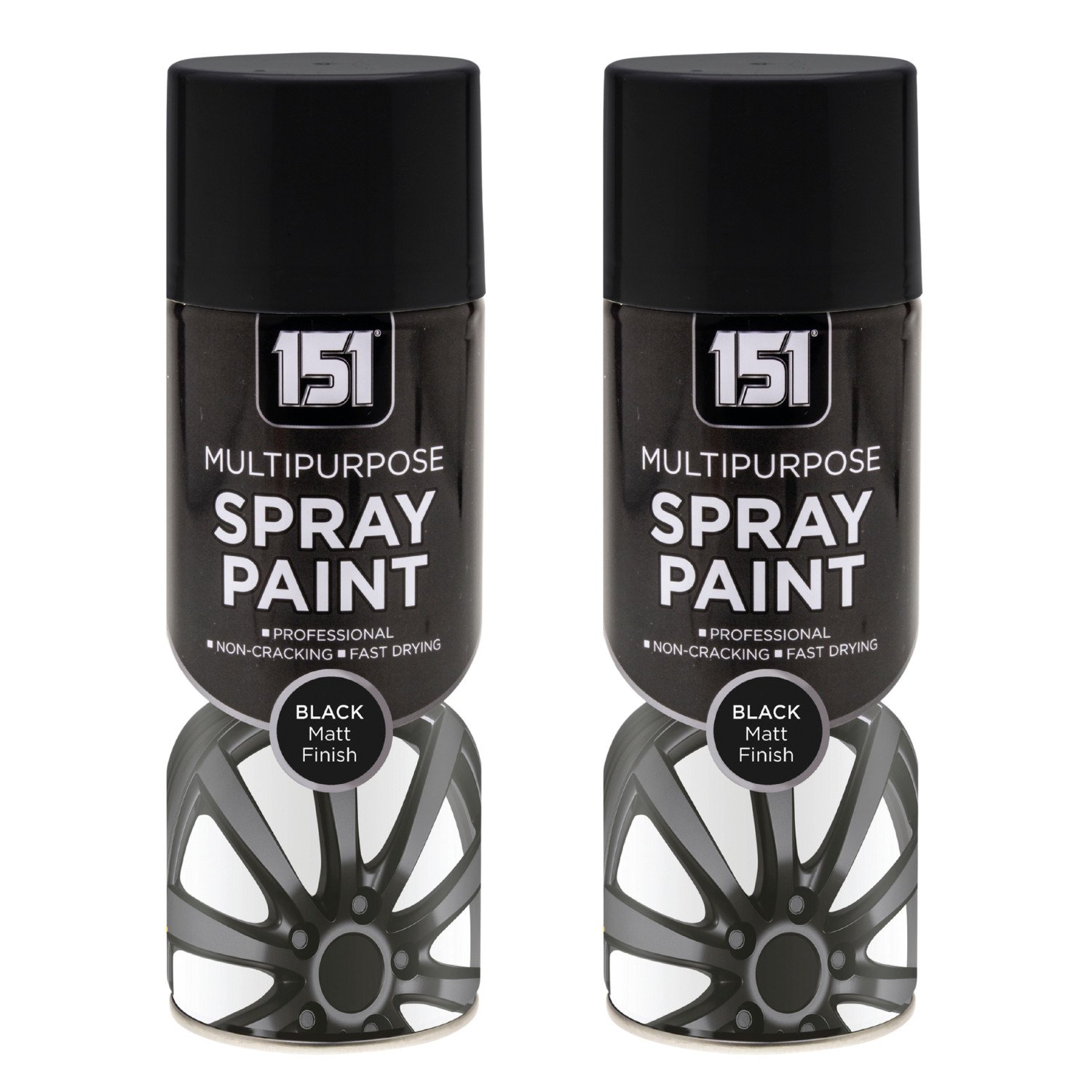 151 Professional Black Matt Finish Spray Paint Alloy Metal Wood Plastic 400ml X2