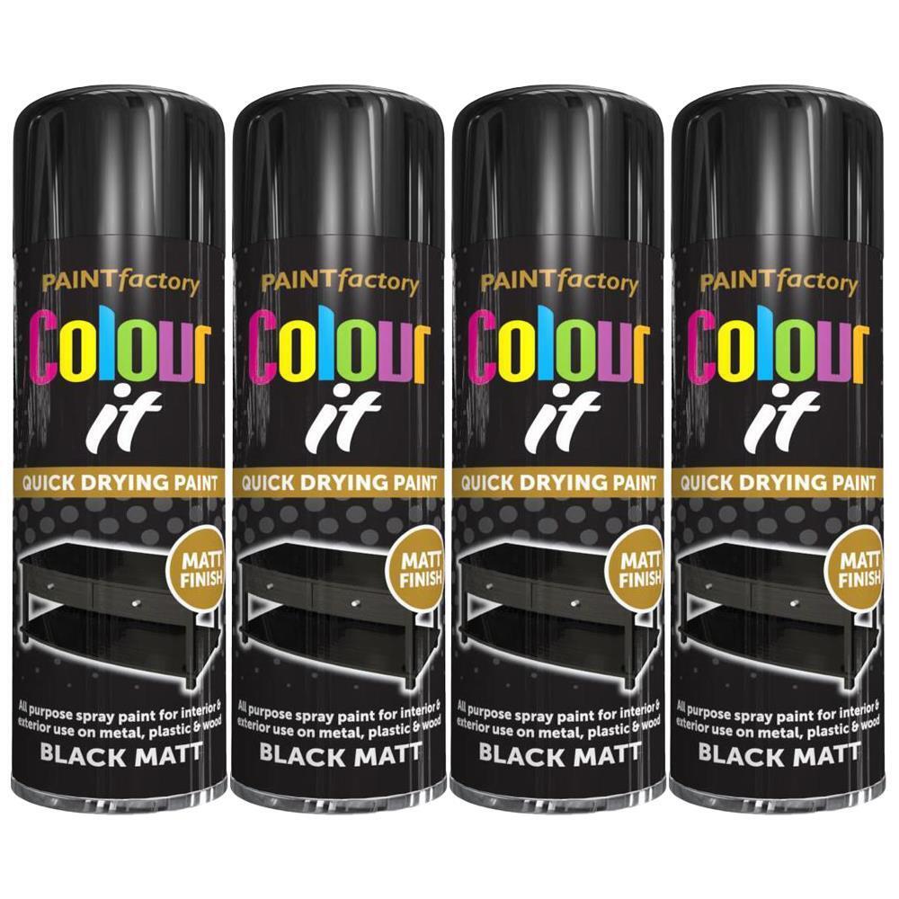 4X Black Matt Spray Paint Aerosol Auto Car Lacquer Wood Metal 400ml