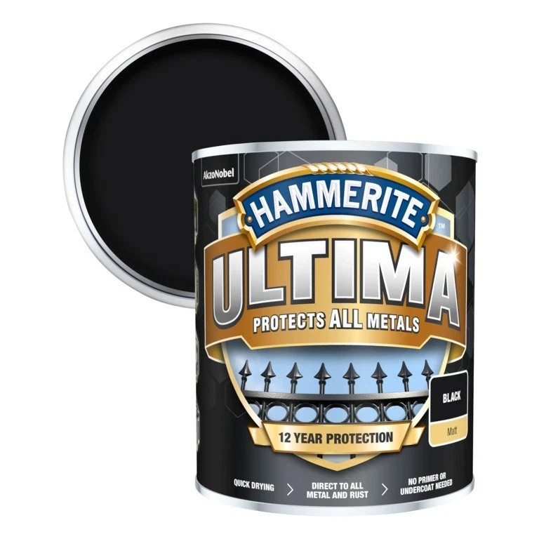 Hammerite Ultima Matt Metal Paint - 750ml - Black, (Pack of 1), HMMUMMBL750