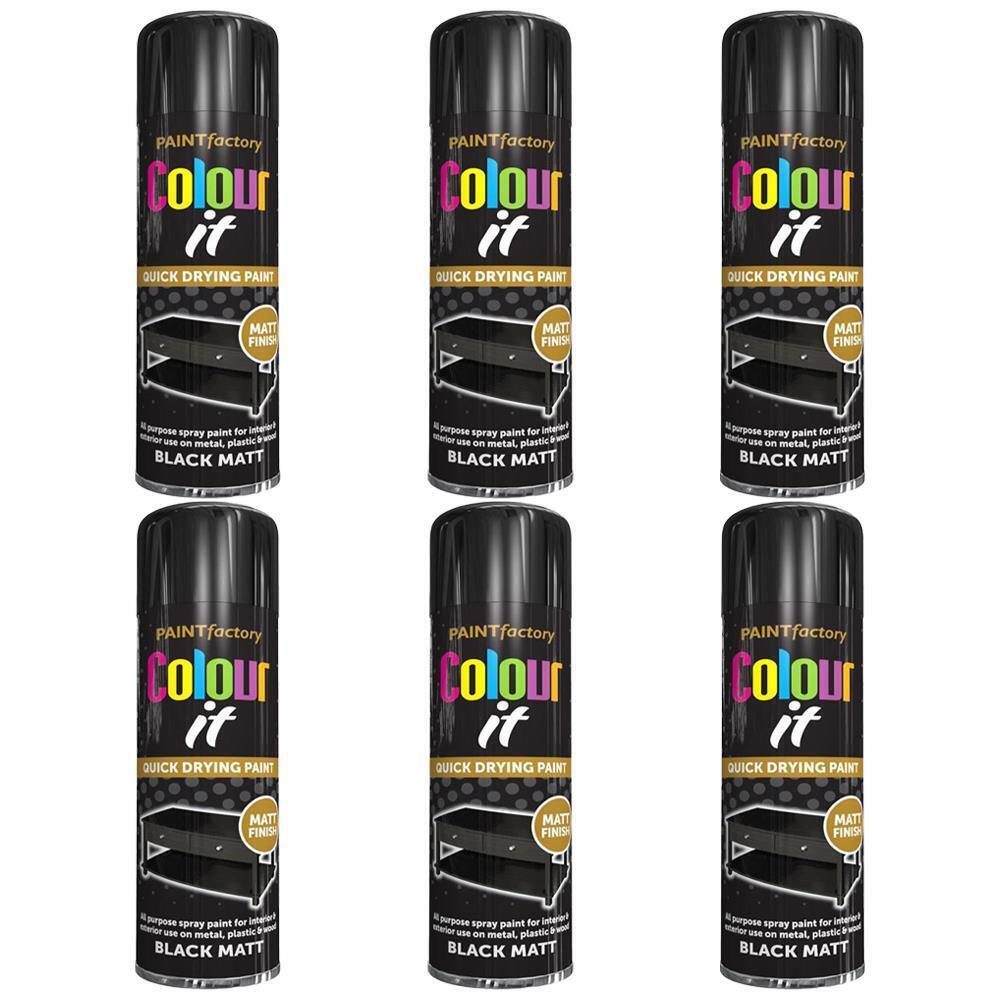 6 x Black Matt Spray Paint Aerosol Auto Car Lacquer Wood Metal 250ml