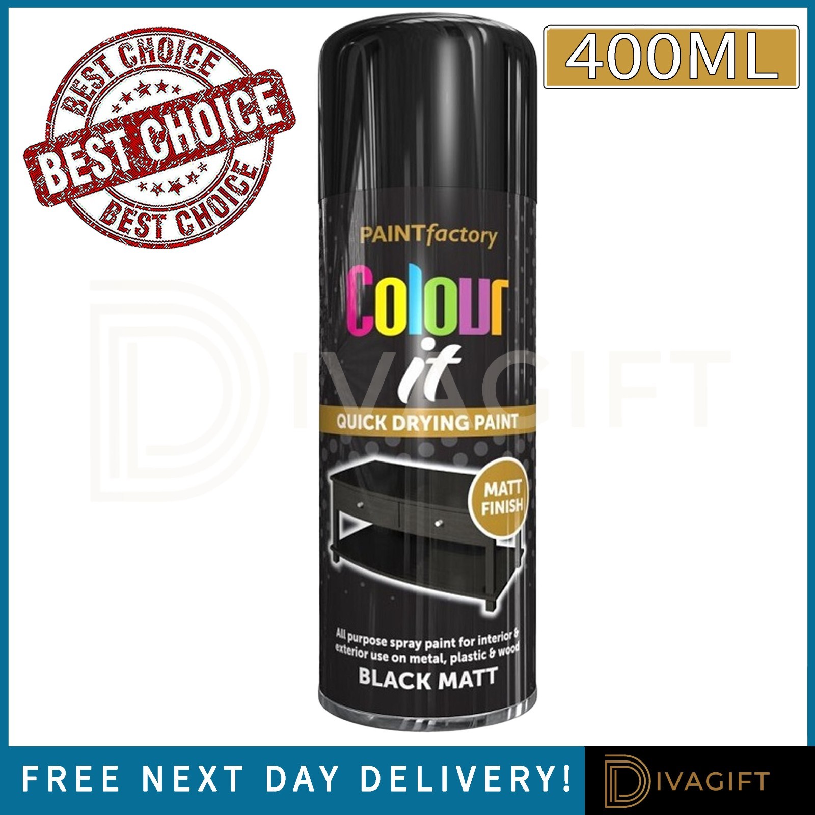 Colour It Jet Black Spray Paint Matt Finish Metal Plastic Wood Quick Dry 400ml
