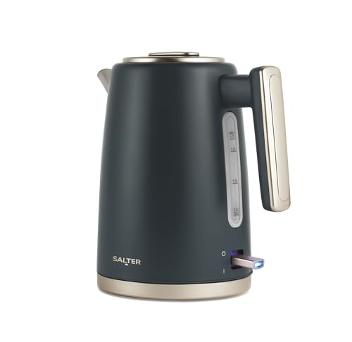 Salter Toronto 1.7 L Kettle – 3KW Rapid Boil, Limescale Filter, Water Level Indicator, 360° Base, Wooden Accents, Cordless, Boil Dry Sensor & Auto Shut-Off, Otter Controller, Matt Black