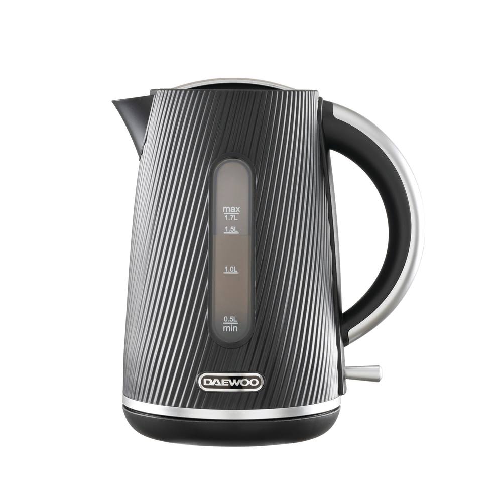 Daewoo 3000W 'Cascade' Fast Boil Electric Kettle Modern Ribbed Matt Finish in Black | Size: Medium