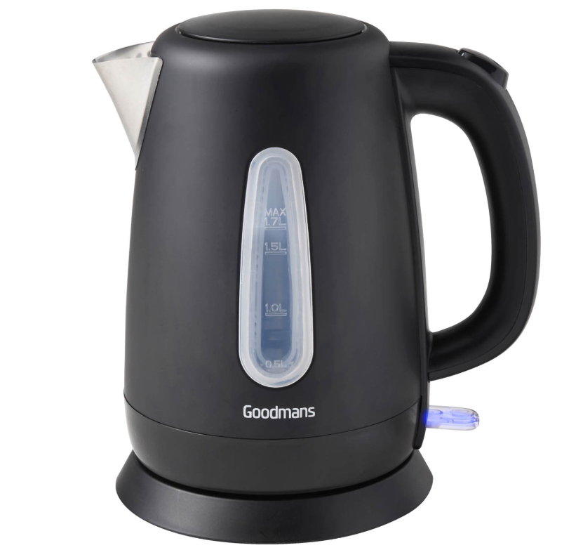 Matt Black Jug Kettle 2200W Blue led guage 1.7L Dual window boil dry protection