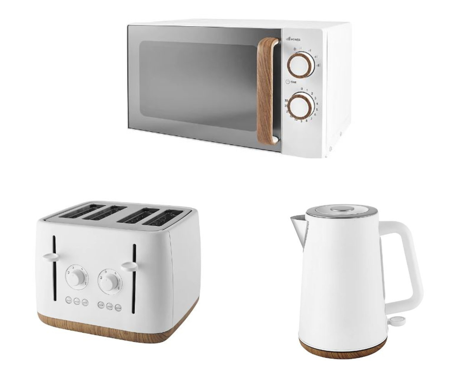 Matt Grey And Wood Textured Scandi Microwave Kettle and Toaster Set