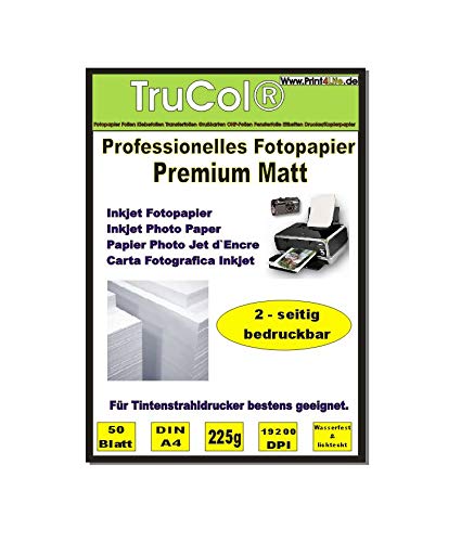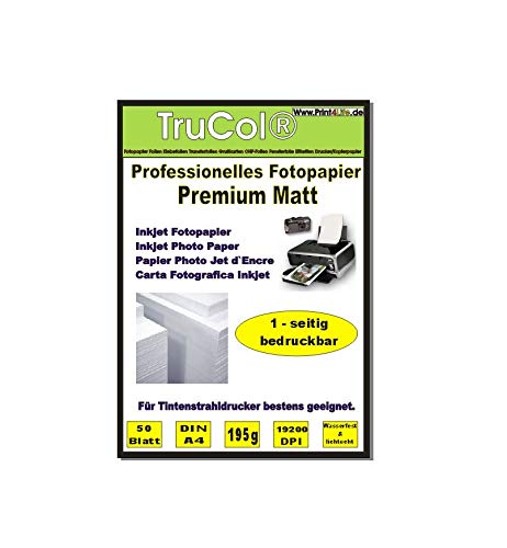 Print4Life 50 sheets of photo paper PREMIUM MATT Inkjet Paper Photo Paper 120g /m² one-sided A4 specially coated to 9600 dpi inkjet printer Water-resistant