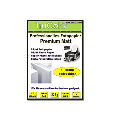 50 Sheets DIN A4 225 g/m² Premium Matt Photo Paper Matte – Dries Immediately – Waterproof – Brilliant White – Very High Colour Brilliance for Inkjet Printers Flyer Paper Brochure Templates