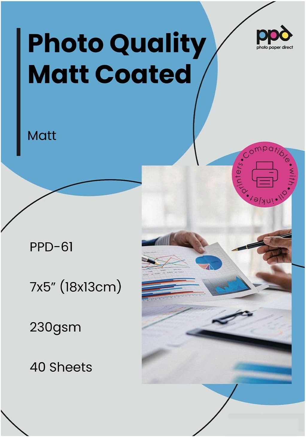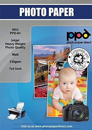 PPD 40 Sheets 7x5 Inkjet Matt Photo Paper 230gsm Super Heavy Instant Dry Low Gl