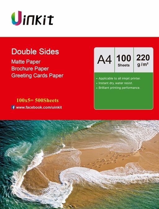 Uinkit 500 Sheets A4 220 Gsm Double Sides Matt Inkjet Photo Paper Printed
