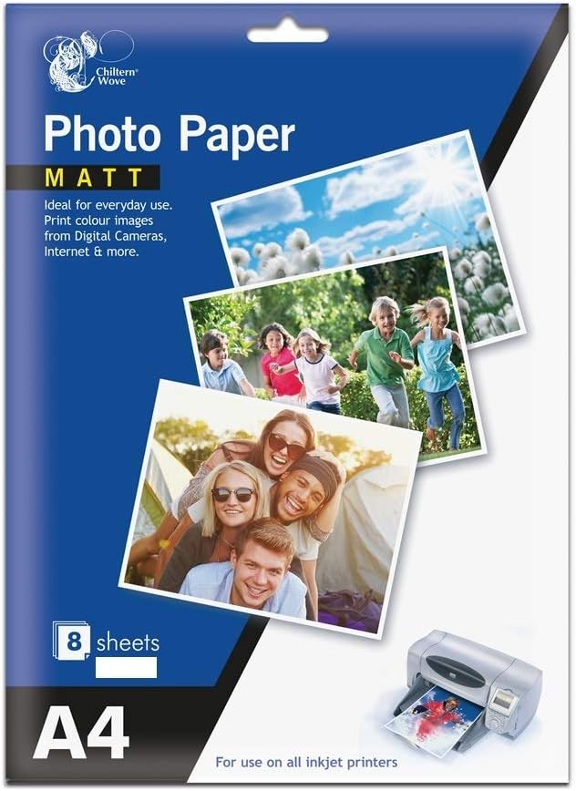 Chiltern Wove A4 Matt Photo Paper 200gsm Pk Of 8 Sheets For All Inkjet Printersr