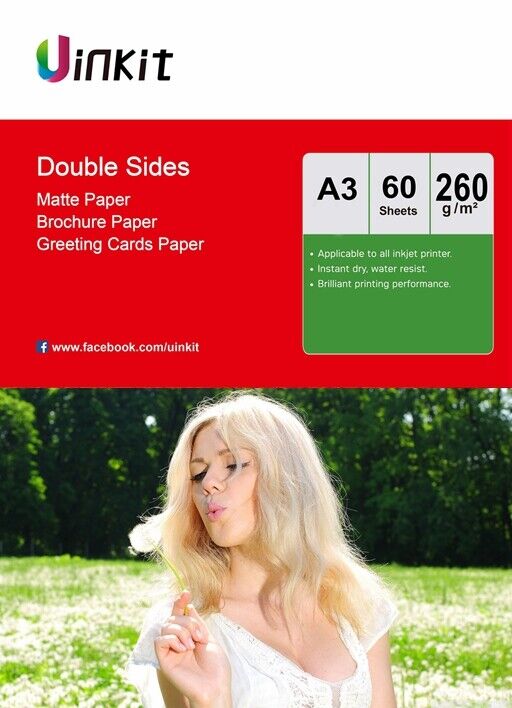 A3 Both Sides Matte Matt Inkjet Photo Paper 260Gsm -60 Sheets Uinkit 420x297mm