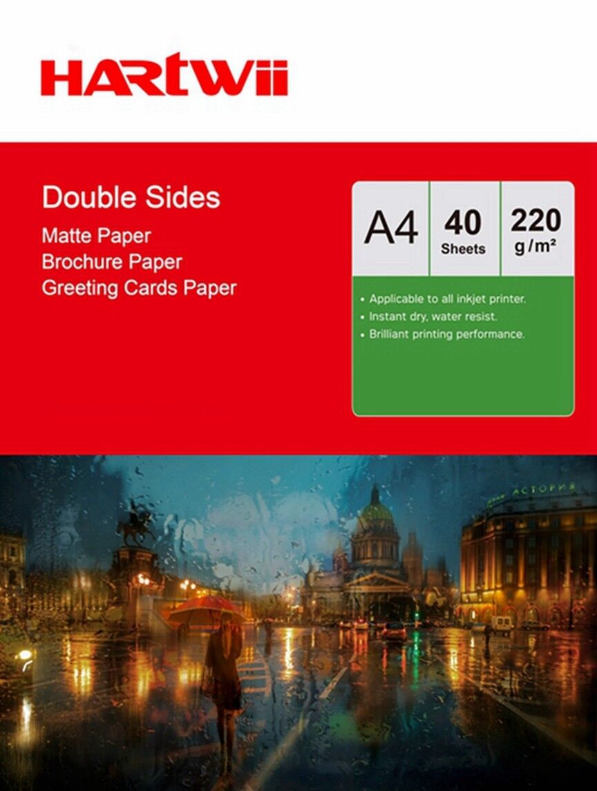 A4 Matte Matt Both Sides Photo Paper Inkjet Paper Hartwii 220Gsm - 40 Sheets
