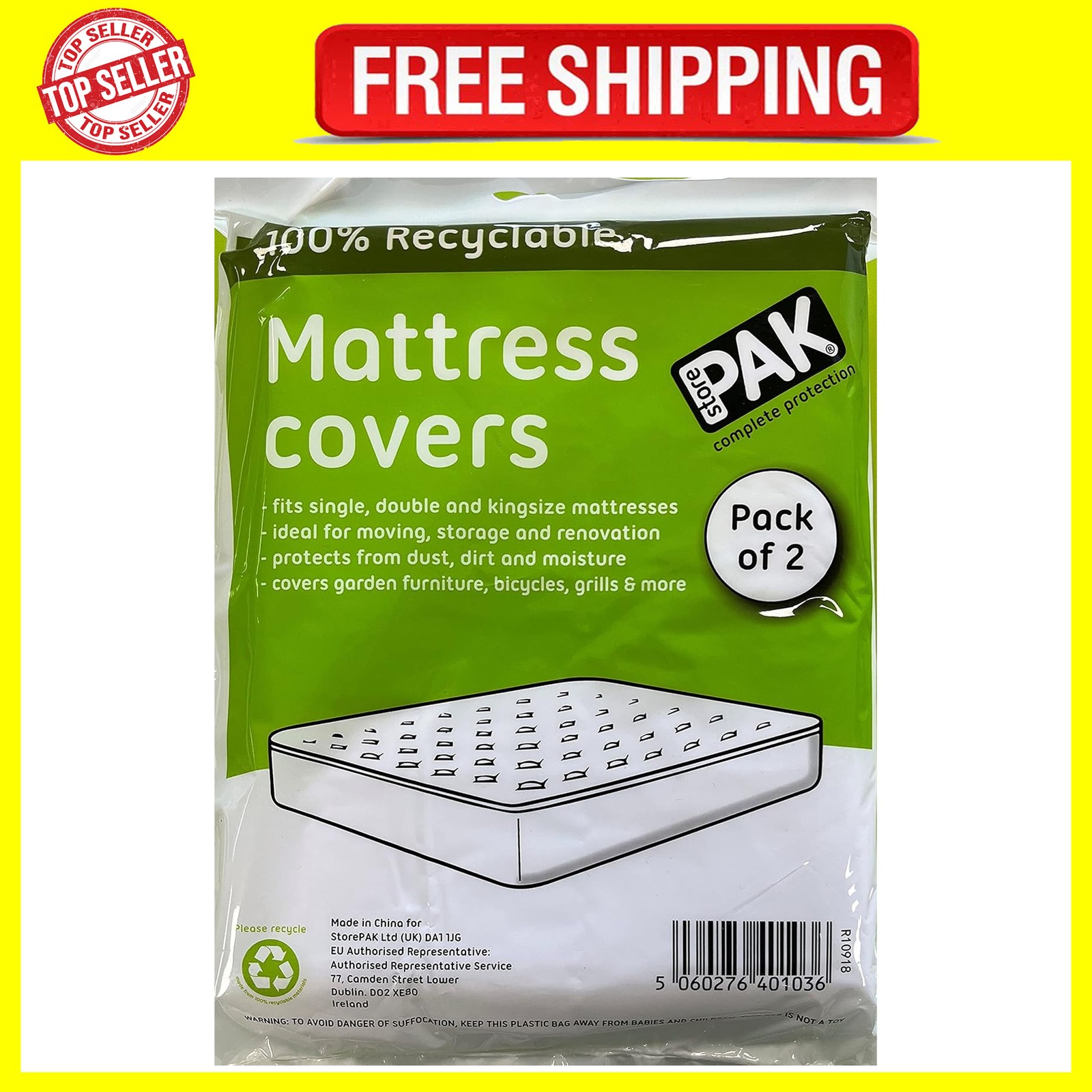StorePAK 2PK King Size Mattress Cover Bags for Moving, Storage or Transport - Mattress Protector Storage Bag - Strong, Re-usable, Waterproof, Anti-dust Case